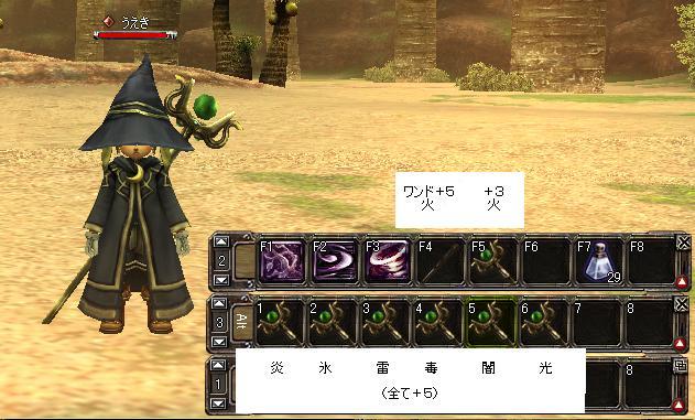 火のジェムで、ワンド+5とワイズマン+3を作って召還してみたところ、どちらも召還