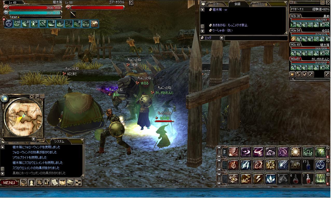本鯖に戻ると、るるっち(エンチャ)ととまっち(アサ)が未開狩りをしていたのでディスタで参加しました。