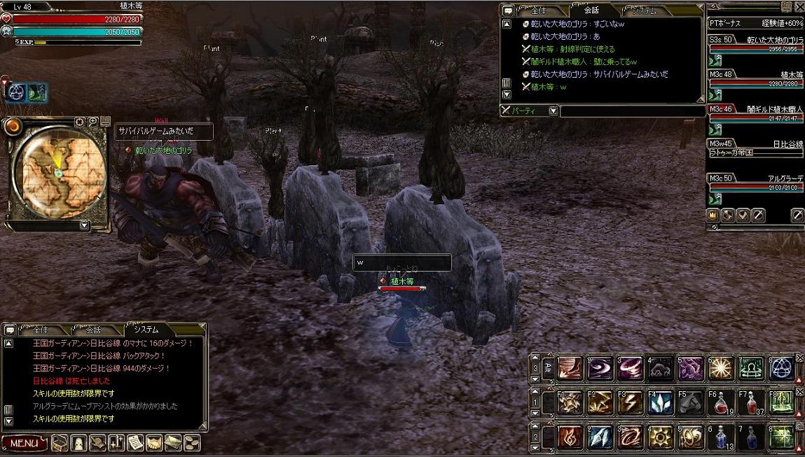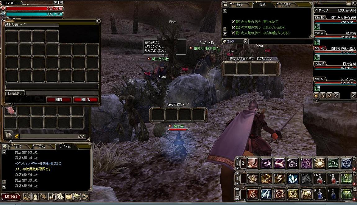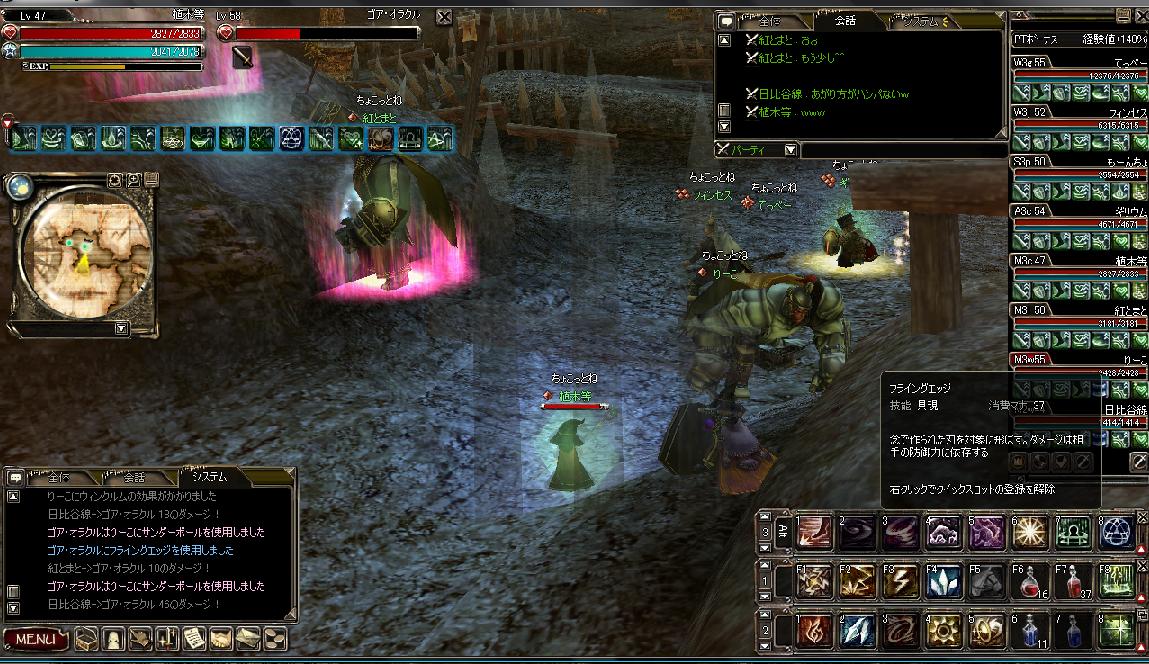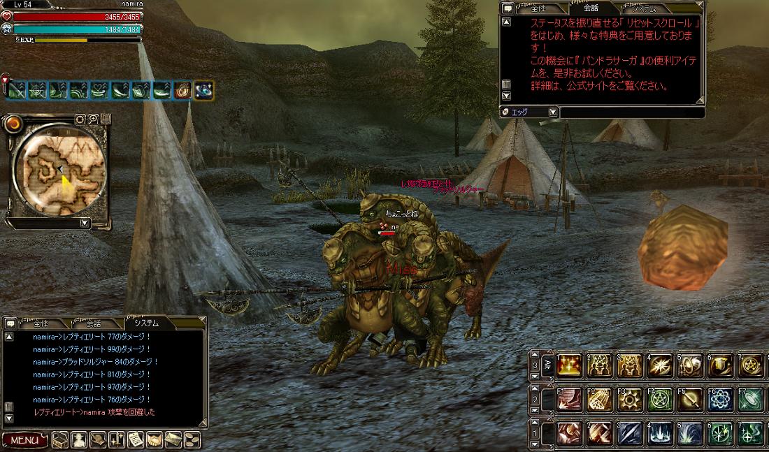 クラメンが未開で狩りをしていたので、久々のプレで参加しました。