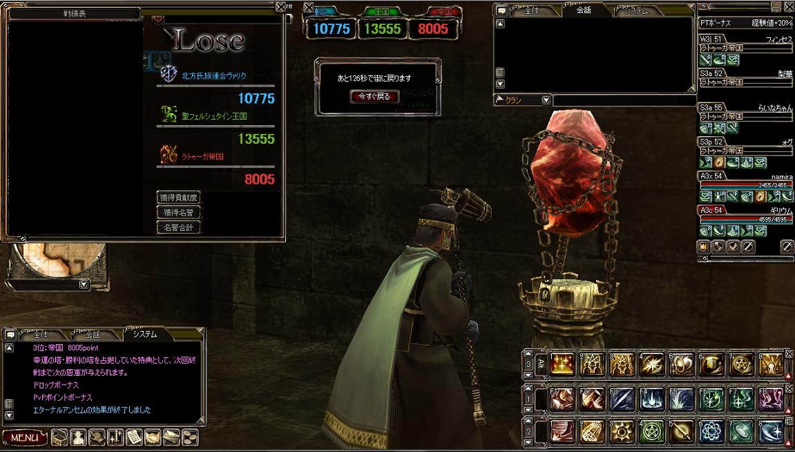 戦後一旦落ち、新キャラ(メイジ)で再INしました。