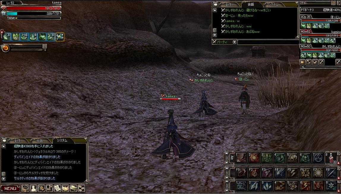 その後、ほねっち(プリ)、かしっちゃん(アチャ)、私(エクソ)の3人で未開狩りに。