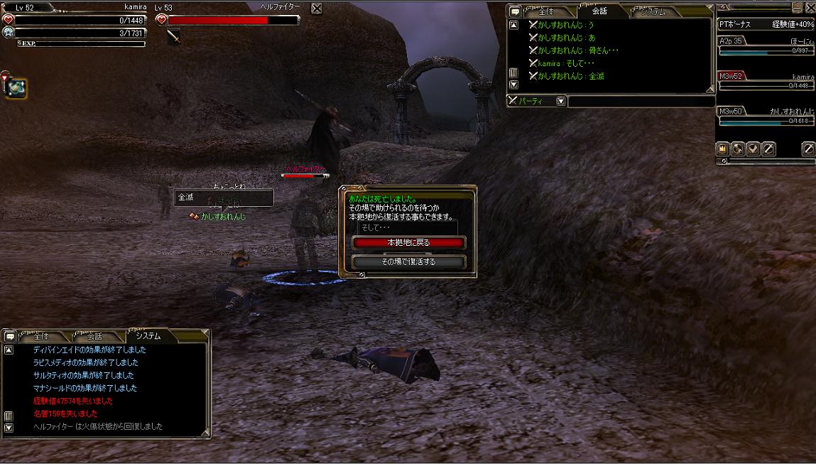 私が上級mobのタゲを取ってましたが火力不足のためタゲが外れてほねっちとかしっちゃんが死亡><