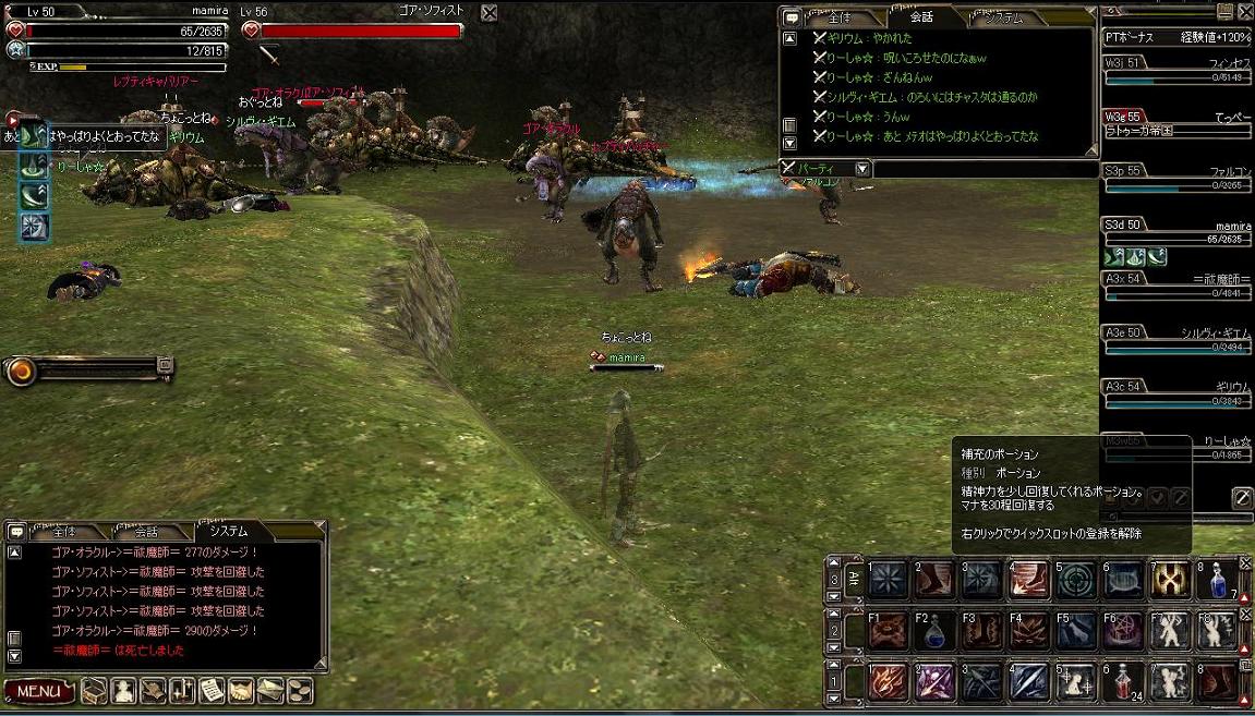 あっと言う間に連合PTを倒し、そのままその場で狩りをしました。