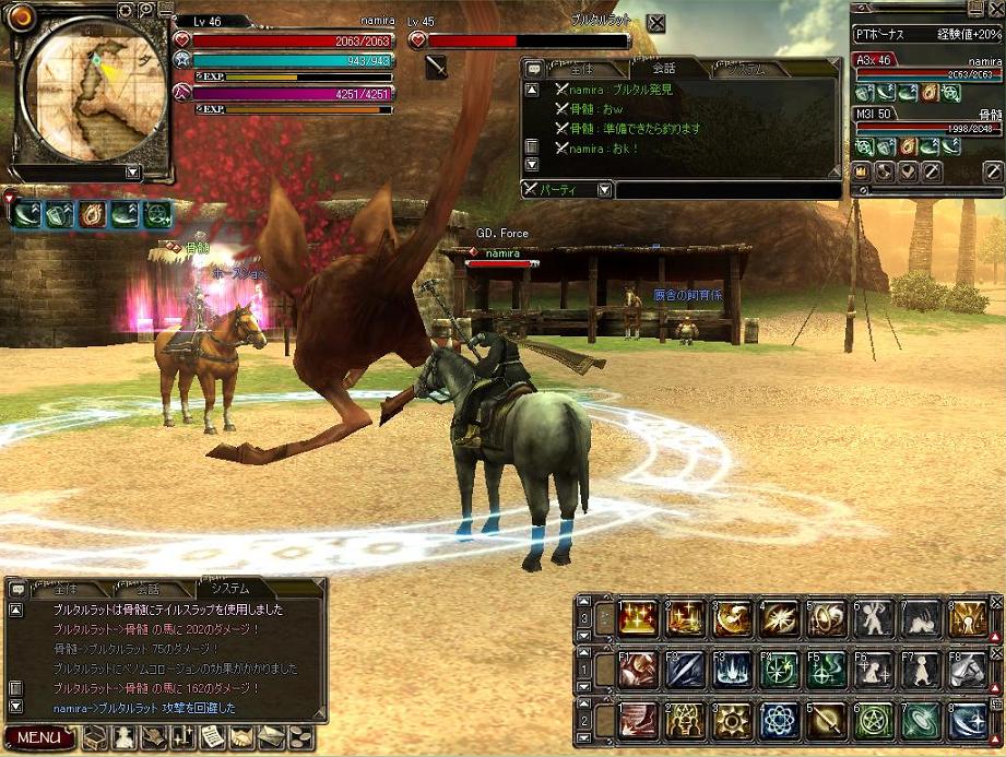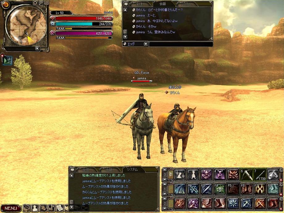 メンバーが誰もいなかったので、とりあえず砂海で馬の熟練上げをすることにしました。