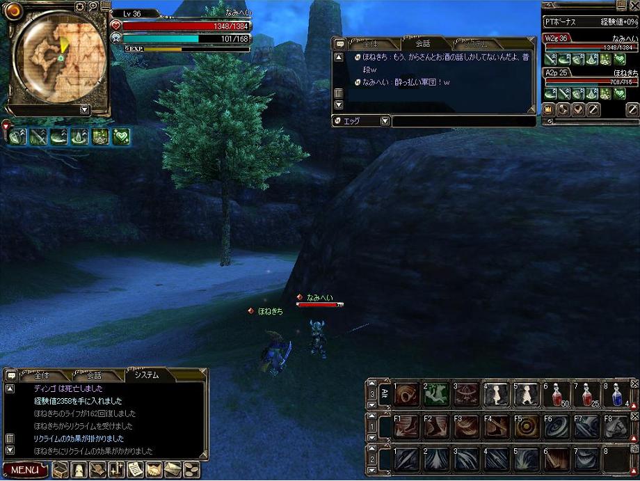 ギリさんとβさんがINしてましたが、βさんは他の方のレベルアップを手伝っていました。