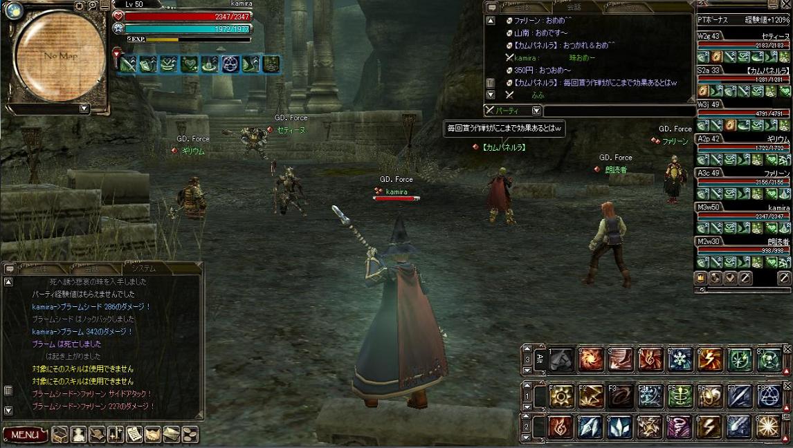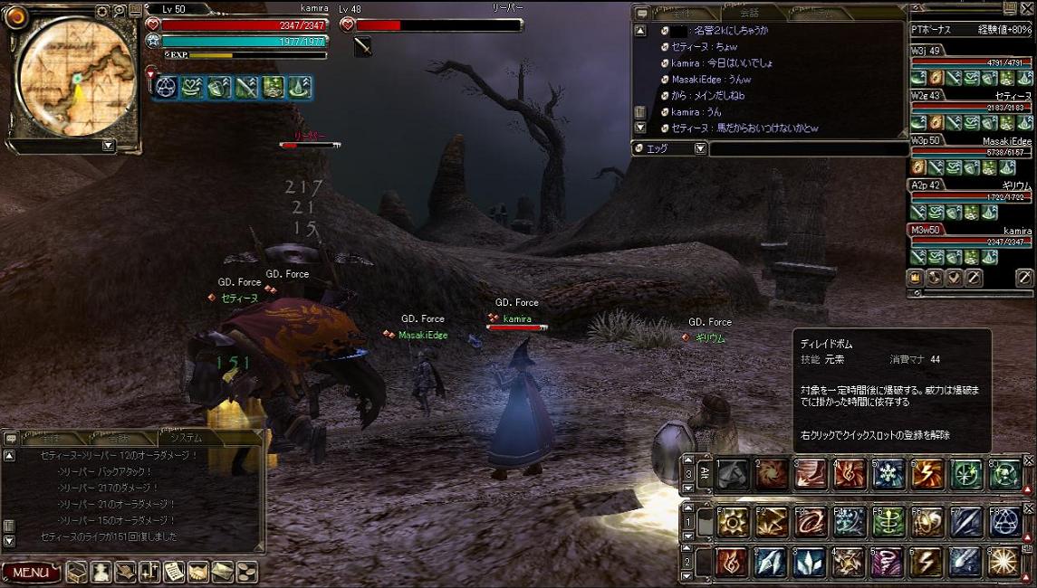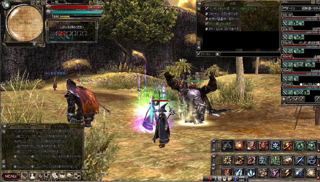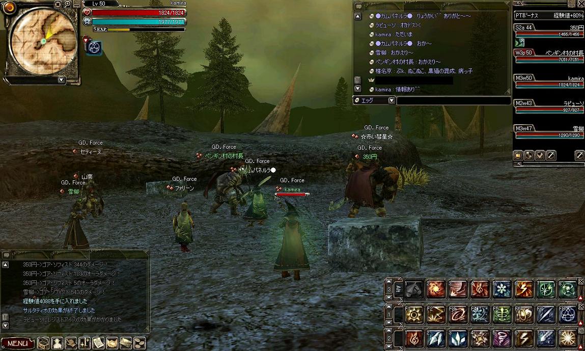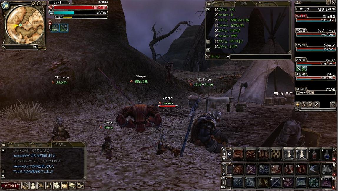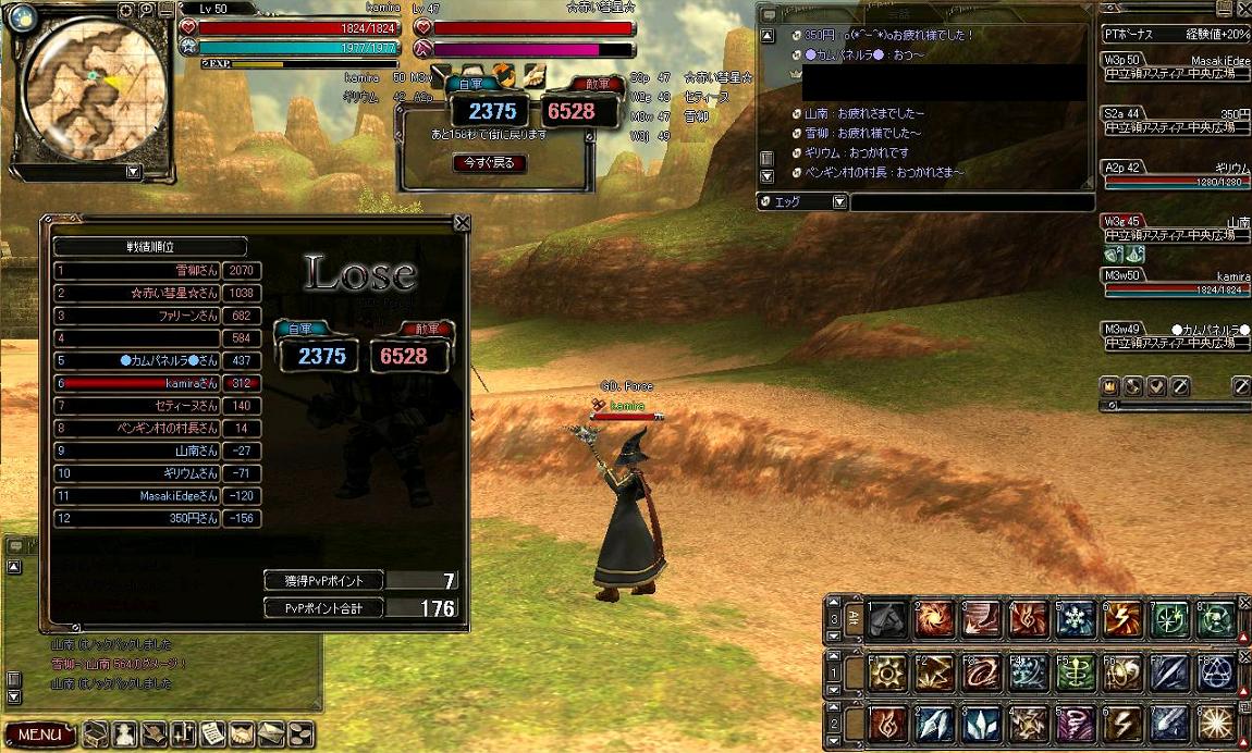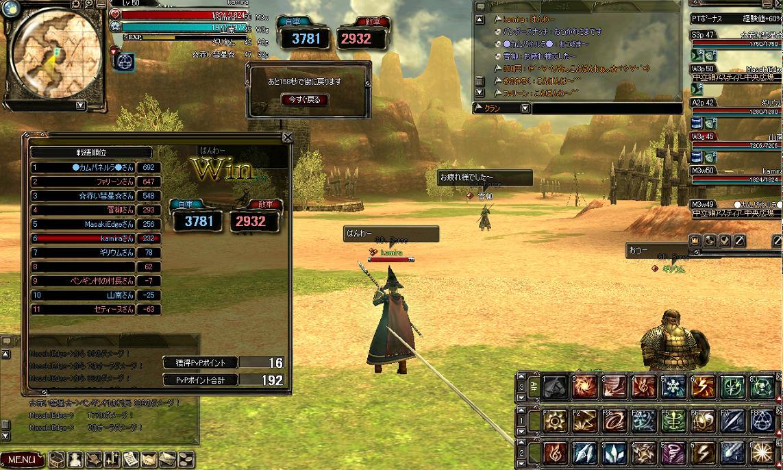 その後狩りにでかけましたが、未開で大規模な対人戦闘が発生したらしく、とても狩りどころではなさそうな雰囲気w 回復職もいなかったので砂海でチマチマ狩ってお開きとなりましたwww