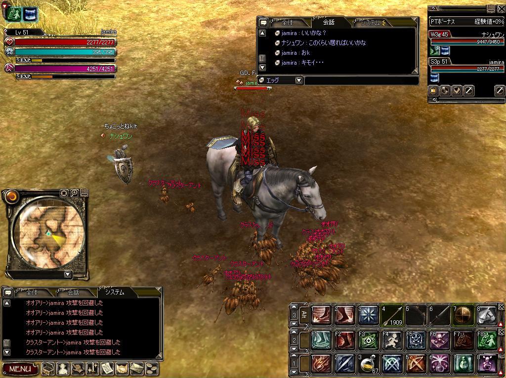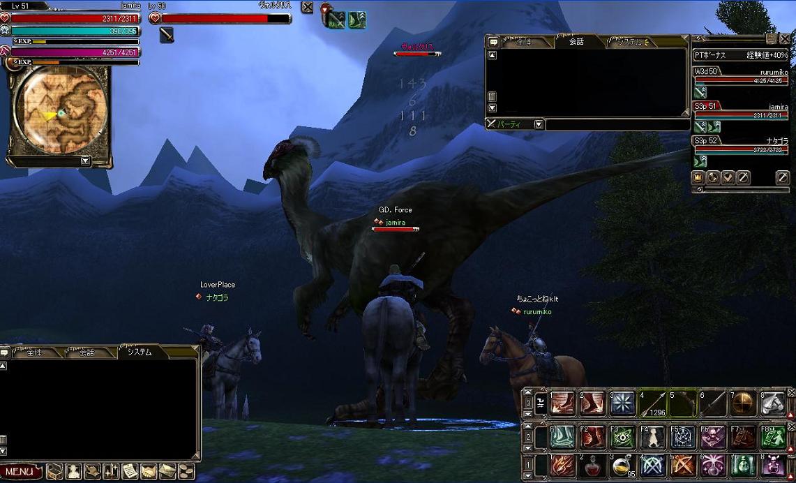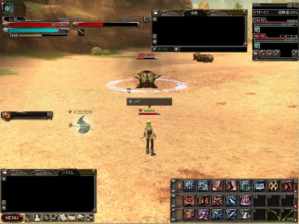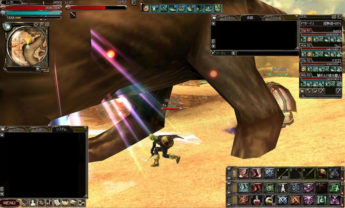 昨日はプレでIN、びりっちに教えてもらったマグロ式騎乗熟練上げをしていると、ベド狩りをしていたがっちゃん(ジェネ)たちから魚交代の募集があったので参加しました。