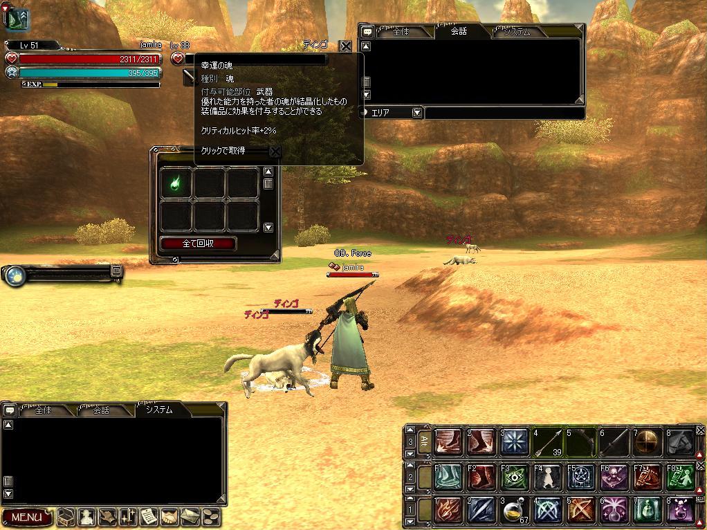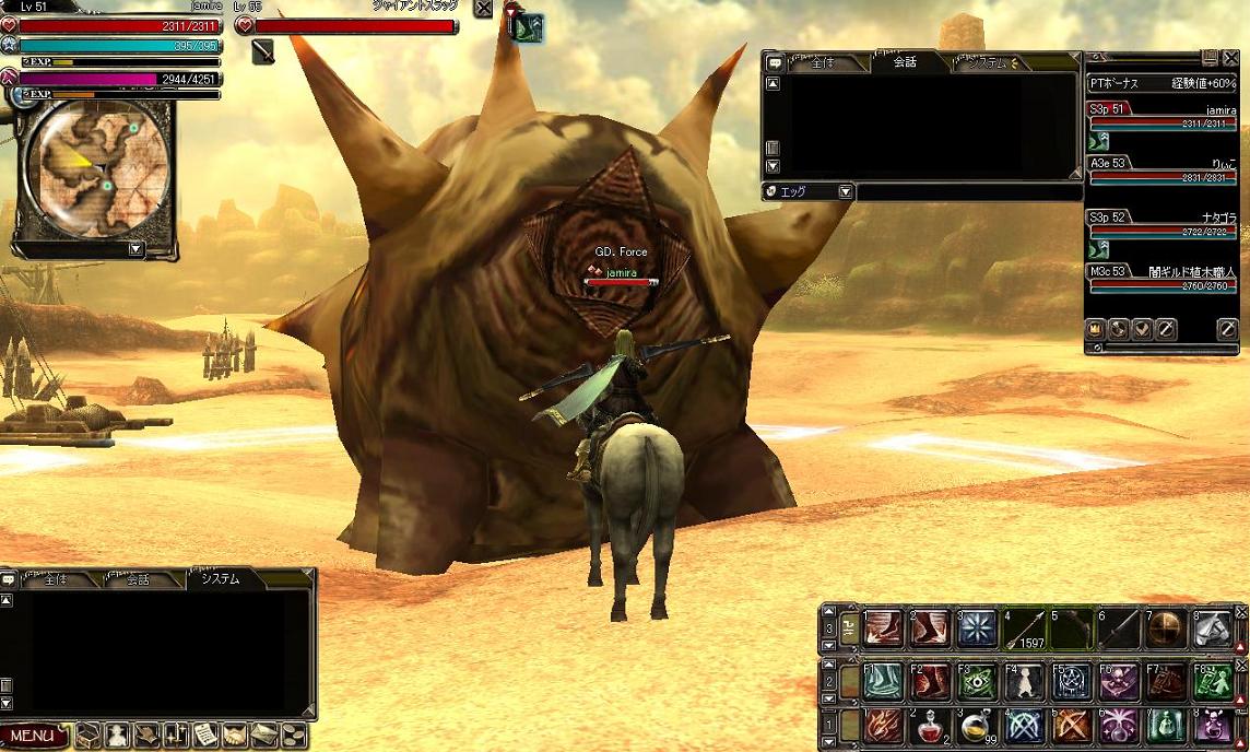 どっちみち死亡フラグと眠気(るるっちに言わせると、まぶたの上で眠りの妖精が踊るらしい)が立ったので狩りを終了してそのまま落ちました。