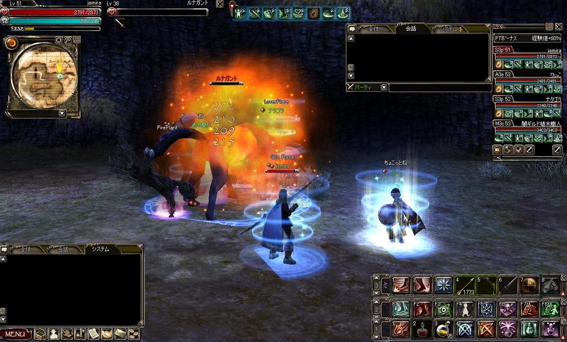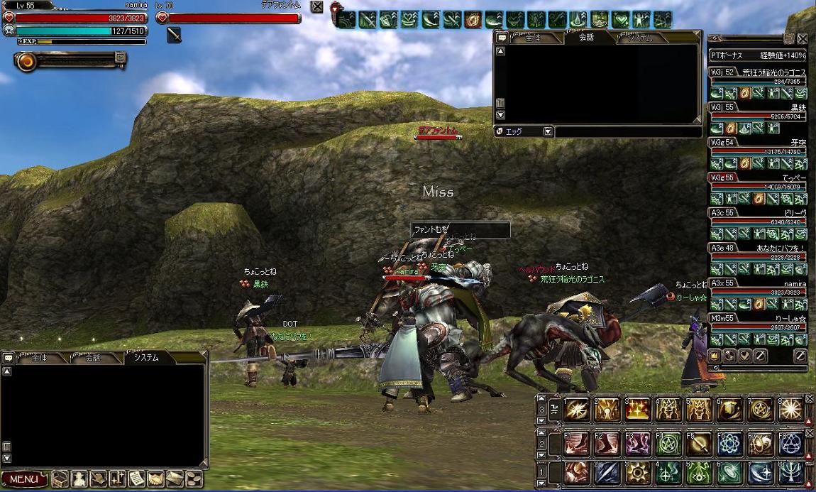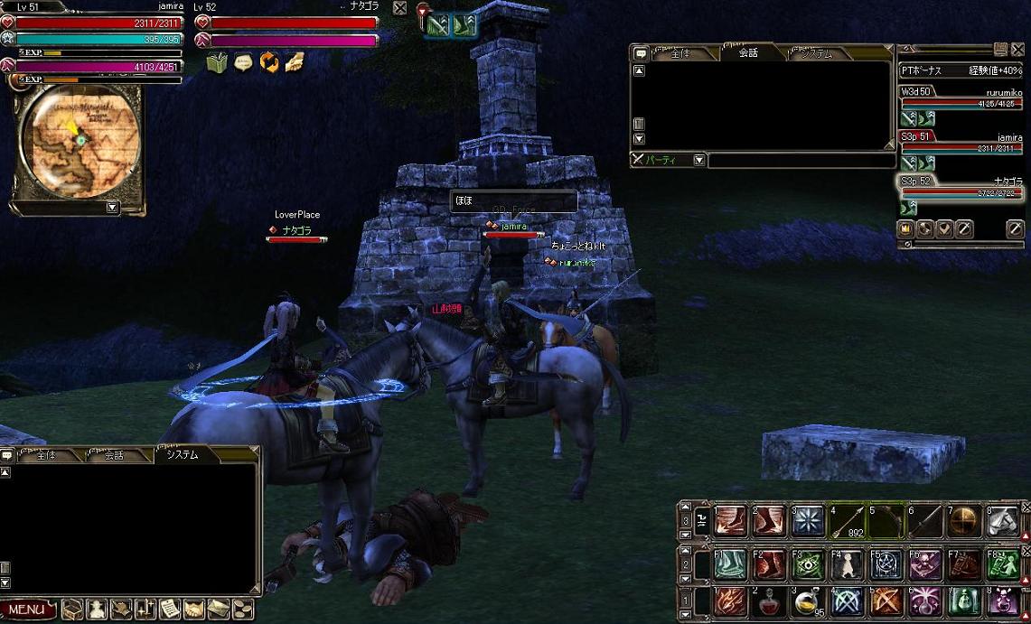 がっちゃんのカンストを見届けたとまっちがPTを離脱(ありがとう)、そのまま7人で狩りを続行しましたがPKにより壊滅><