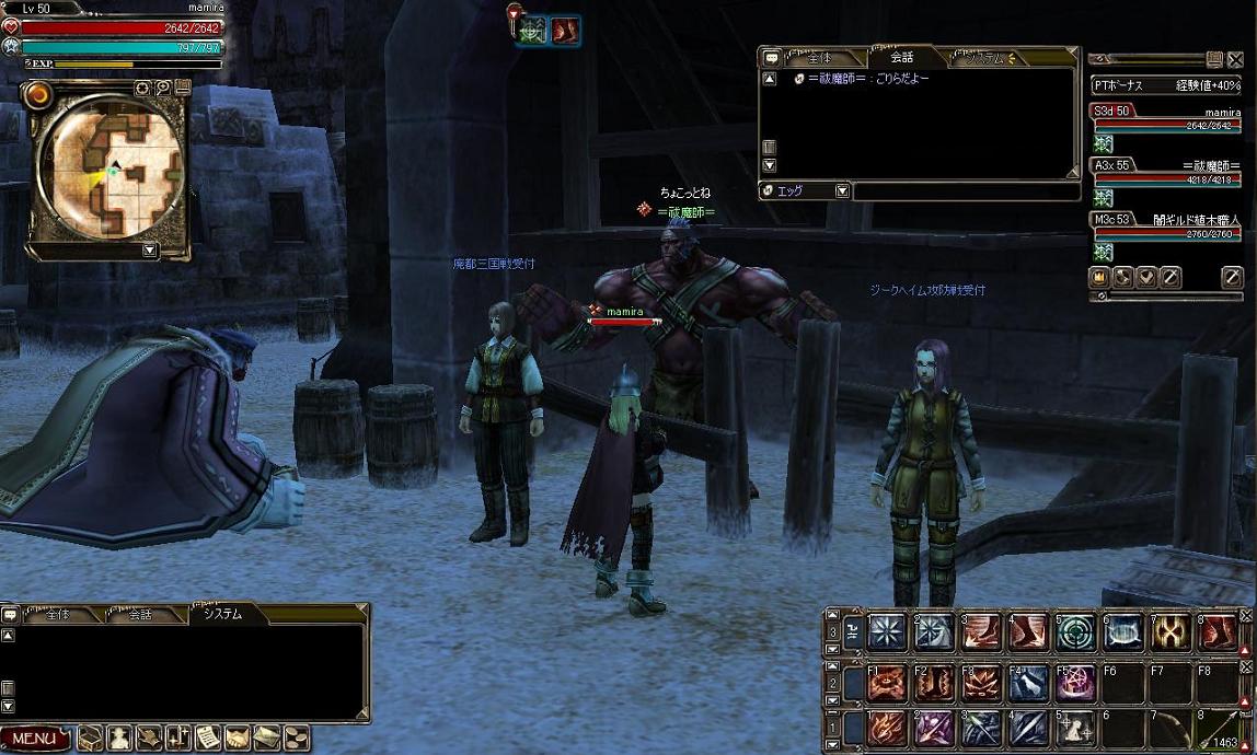帝国で遊んでいると、がっちゃんと海っちのいとこ(おじいちゃん?)がINしているとのことで会いに行きました。
