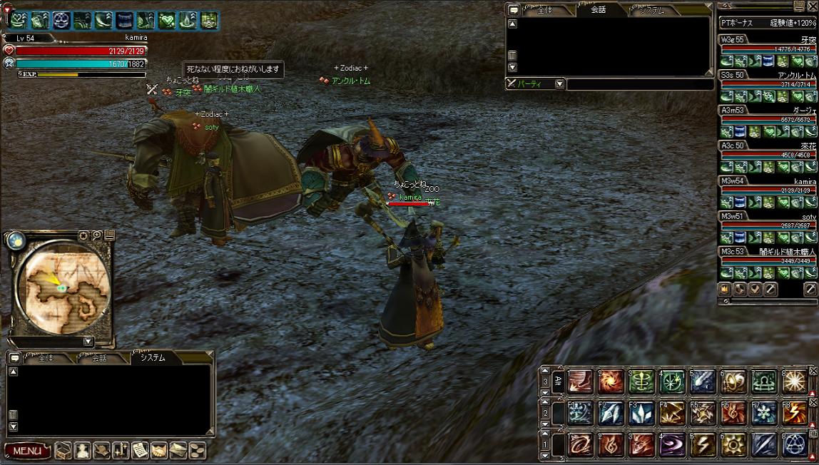 とりあえず7人で狩ってましたが、桜並木DXさんが落ちるとのことだったので募集を掛けると、クラン+ZODIAC+のアンクル・トムさん(砂)とsotyさん(魚)が参加して下さいました。