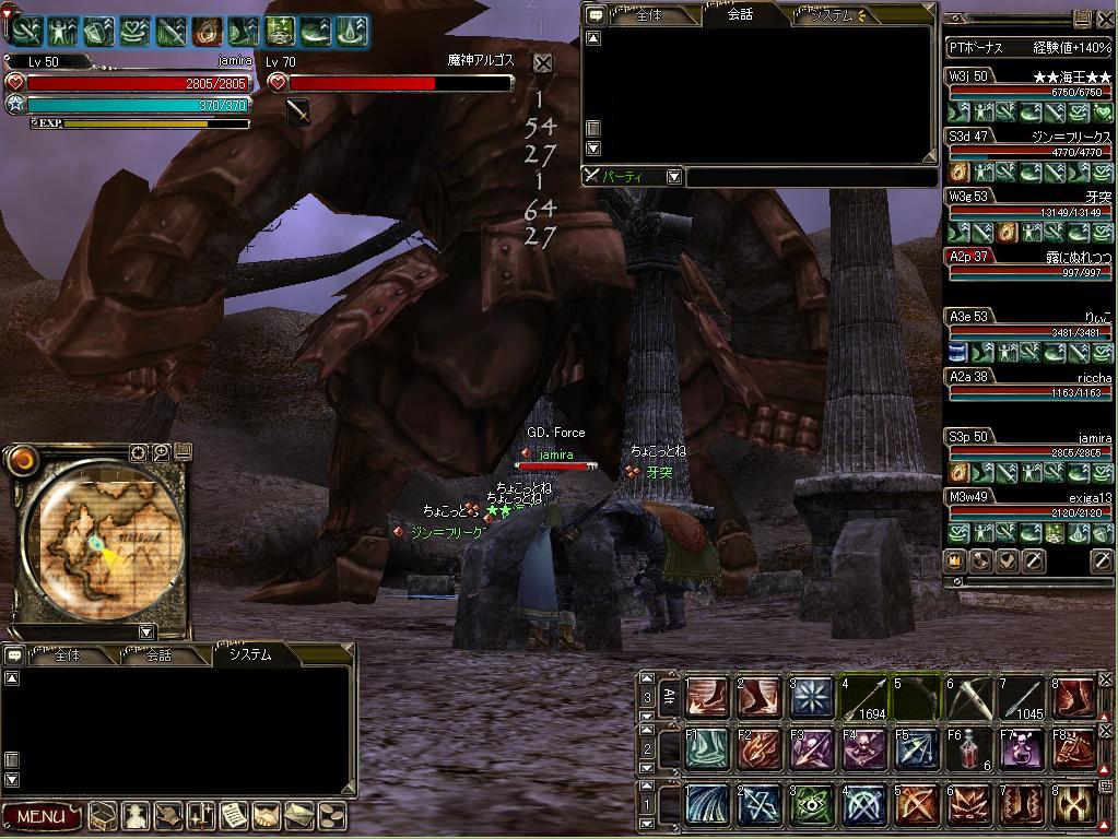 PKもあり未開へ場所を移したりしましたが、なにより狩場を確保するのが大変でした。
