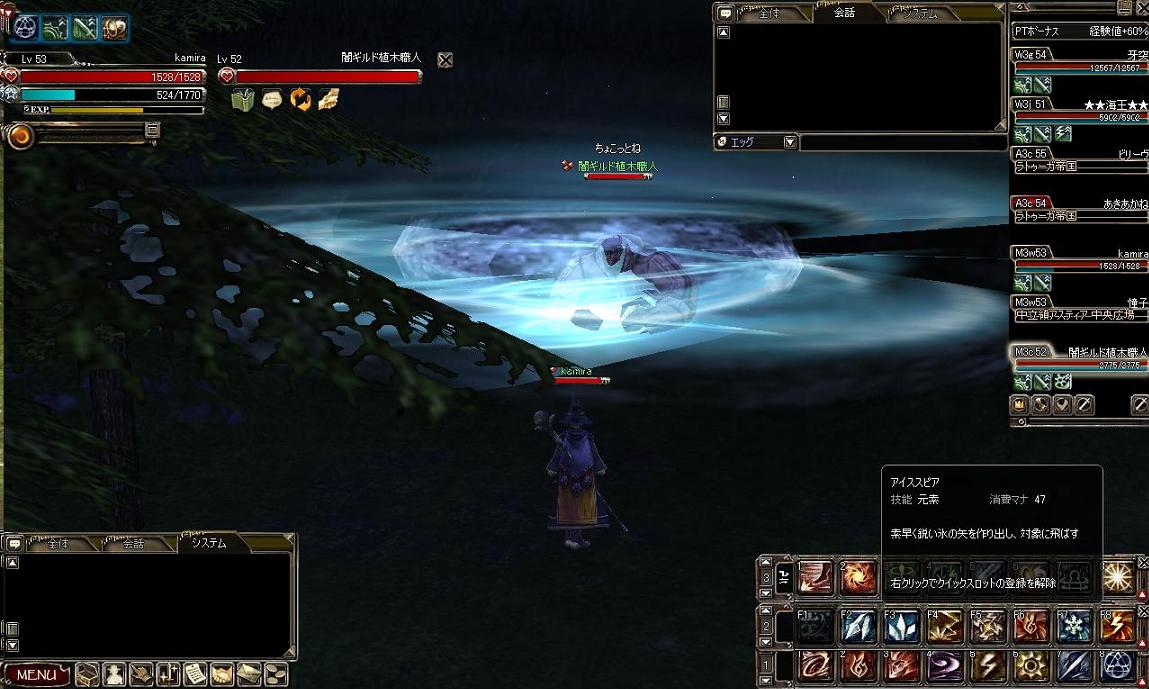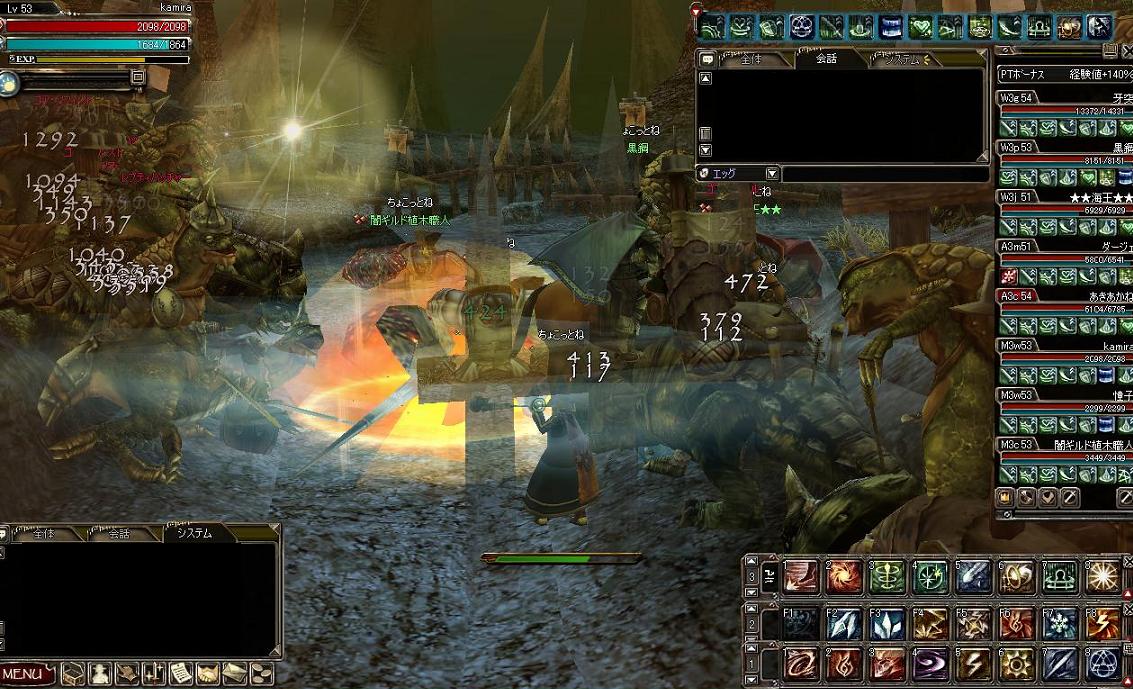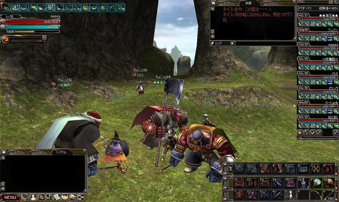 しばらくして、未開狩りしていたてっちゃん(ディス)ともっきー(エンチャ)のPTに入れてもらいました。