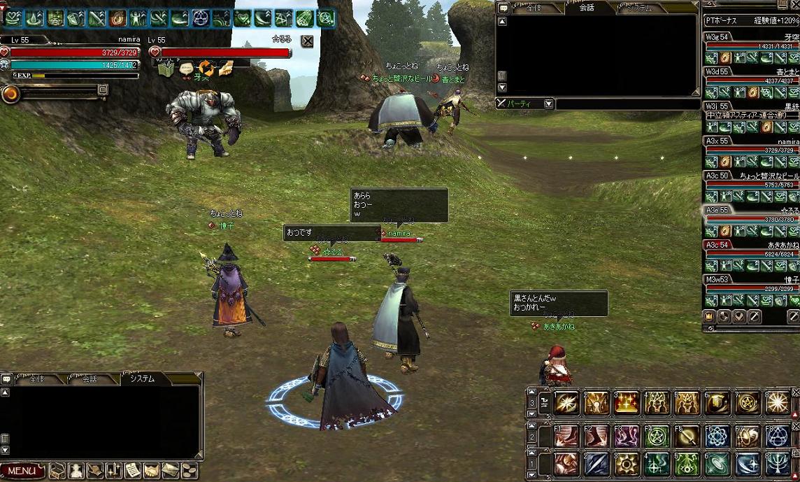 揃ってみるとゴリラ集団w、職もバラついてましたが、うまく中級移動狩りや上級を狩れました。